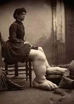 17、1890年左右,俄亥俄州這位女士患了「象腿症」。