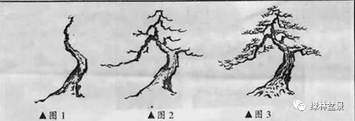 一、線,結體構架我們都知道,盆景造型的基本因素是由根基、主幹、枝杈、樹冠和葉片以及盎盆配件組成;同時也知道,盆樹無葉亦成景(觀骨或寒林),若無枝幹,葉無依託景何有?而且更深知盆景造型是點、線、面的組合。然我們再深入理解進一步分析概括,我們將發現,在諸構成成分中,起主導作用的則是線。所以能否這樣說:點是線的開始,線是點的延伸,片(面)是線的集結。如: