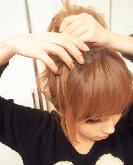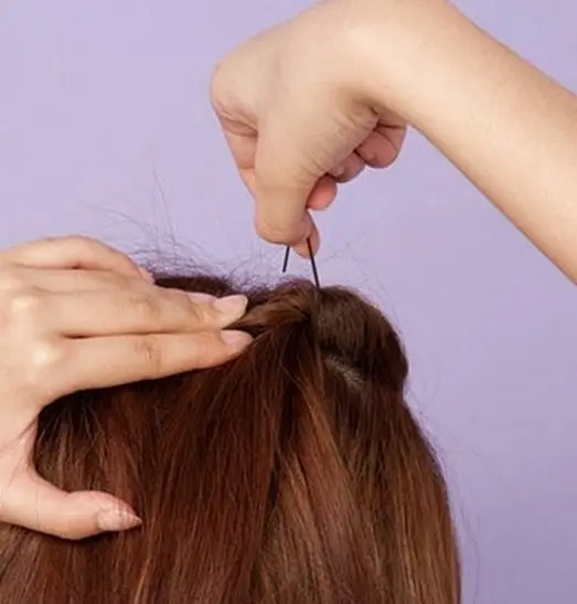3、使用黑色髮夾固定在頭頂上,而左邊也按照同樣的方式進行編髮。