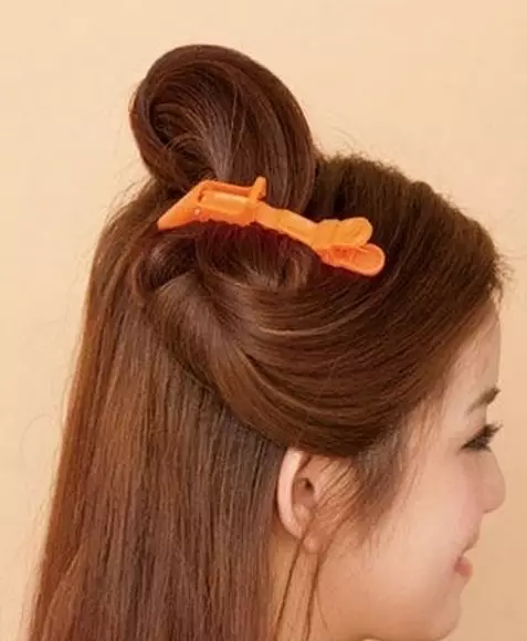 5、再把盤發器的兩端向下彎折,將兩側合攏起來。