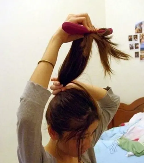 步驟一:用手將全部的頭髮抓起來,高高束起,用膠圈固定好!