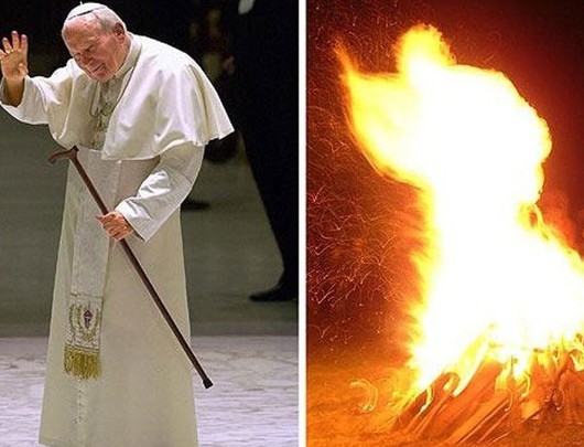 波蘭在守夜紀念教皇約翰保羅二世去世兩周年。業餘攝影師格熱戈日拍攝的篝火顯現出類似約翰保羅二世的剪影,數碼圖片的時間21.37:30,正與教皇去世的時間相吻合。