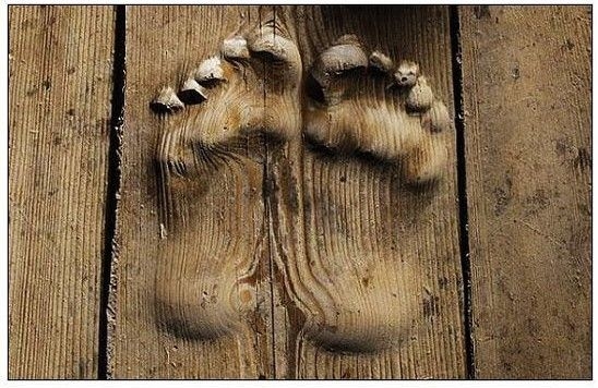 在中國青海省同仁縣的一座寺廟裡,人們在一塊木板上發現兩個清晰的腳印。當地人認為,這對腳印是由一位虔誠的禮拜者所留下的,他就在這裡虔誠地祈禱了數十年。