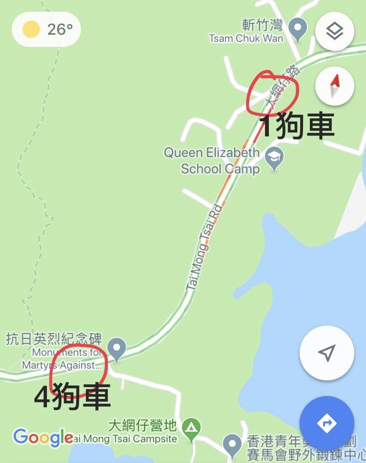 發現4狗車位置係西貢抗日英烈紀念碑
