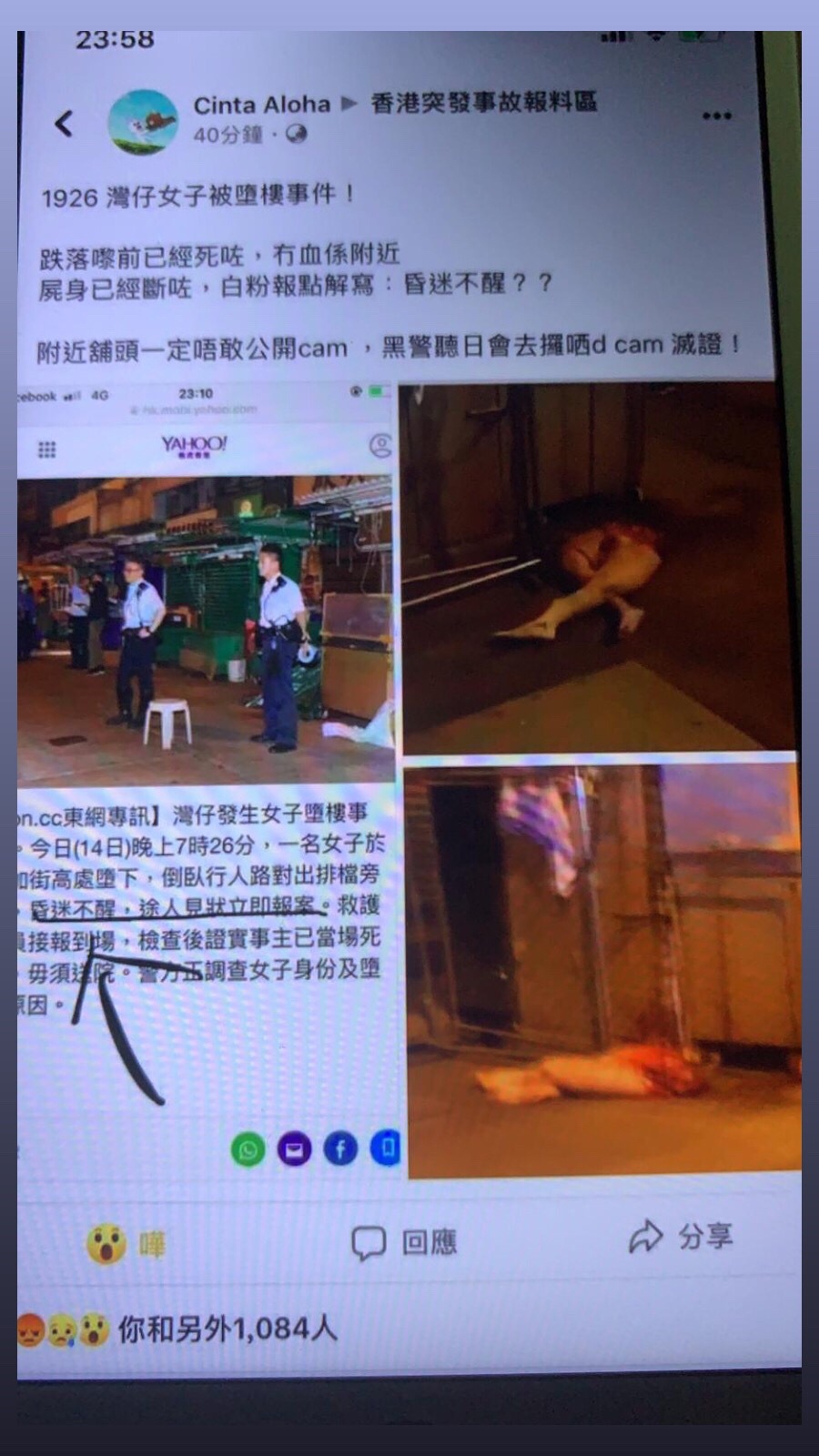 4/ 事主上下肢體分離及「由高處墜下」,從生物角度絕對是瞬間或早已身亡,警方及其報導媒體如何判斷事主為「昏迷不醒」?