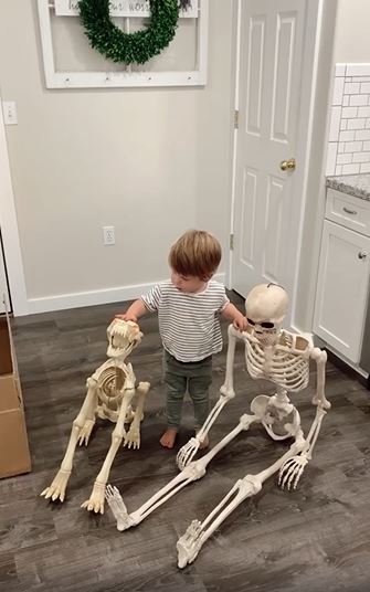 居住在鹽湖郡(Salt Lake County)的27歲女子布雷迪(Abigail Brady)在IG上分享,她表示大概兩個禮拜前,因為暴雨而讓地下室有些淹水,所以她整理了一些東西搬到樓上,結果2歲的兒子希奧看到了一具萬聖節裝飾的骨骼模型,以為對方溺水,焦急地想把模型給搬上樓,沒想到兩人意外開始了一段友誼!