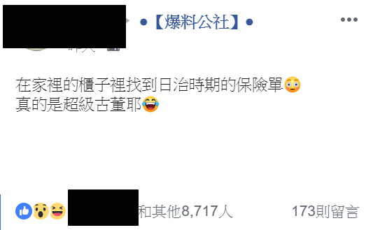 日前有網友在臉書社團「爆料公社」發文說,她在整理房間的時候,突然看到櫃子裡面,有一張神秘的紙張,拿出來查看才發現,竟然是日治時期的保險單,發行公司是「野村生命保險株式會社」,當時買下的是「養老生命保險證券」,金額總共是500元。