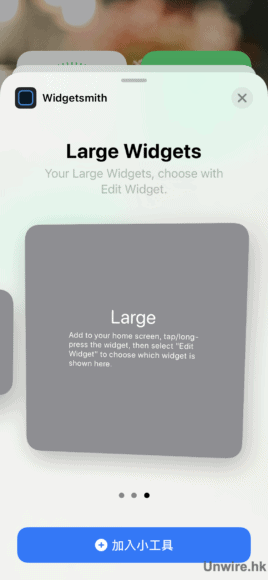 接着會彈出以下畫面,選取你所需大小的 Widget 然後按加入小工具,便已經成功將 Widget 加到桌面。