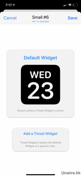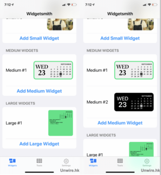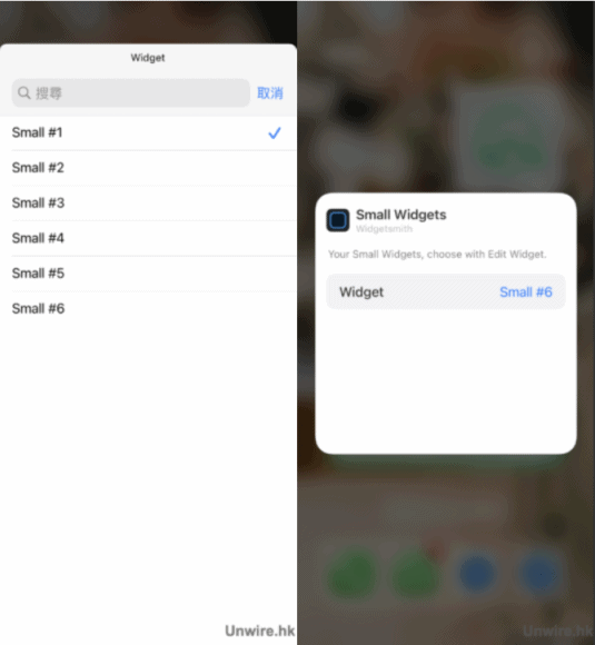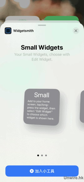 ▲先新增一個「Small」的 Widget,便會彈出一個全新的 Widget 方格