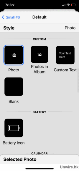 建立一個新的 small widget 並於 Custom 中選取 Photo。