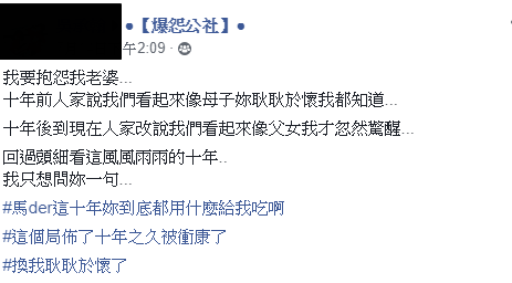 原PO網友也笑說:「回過頭細看這風風雨雨的10年,我只想問妳一句,媽der這10年妳到底用什麼給我吃啊?這個局佈了10年之久被衝康了,換我耿耿於懷了。」讓所有人都笑翻!