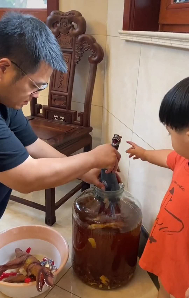 有些家長總結了一條經驗,孩子靜悄悄,必定在作妖。正因為很多孩子在調皮搗蛋的時候是偷偷進行的,所以家長有時候不能及時發現。今天要說的這件事情就是如此,之前,爺爺泡了一大罐藥酒,到現在已經有十年的時間了。這不,家中有喜事,爺爺打算將藥酒拿出來喝,當爸爸將爺爺的藥酒取出來之後,就有些不淡定了,因為酒瓶裡除了各種藥材之外,還有一些其他的東西。