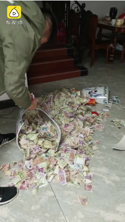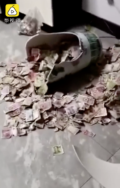 從畫面中可以看到,花瓶這一摔,竟然直接裂成了兩半,而更令人震驚的是,鈔票、零錢隨著它灑了出來,一毛、兩毛的硬幣都有,最大的是10元鈔票。這些錢鋪滿了客廳的小角落,還沒認真數,就能想像金額肯定不少。等到男子回家後,逼不得已只好向老婆坦白,對方受訪時也透露,自己數了整整一個上午,發現總共有5000多元(約2.25萬元新台幣),頓時笑得合不攏嘴:「10幾年才存5000多,很搞笑吧!」