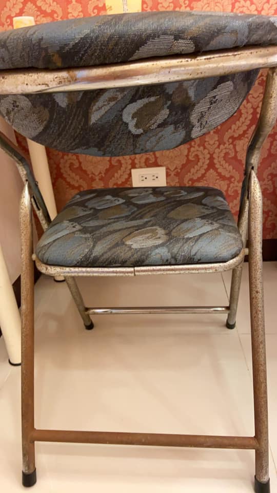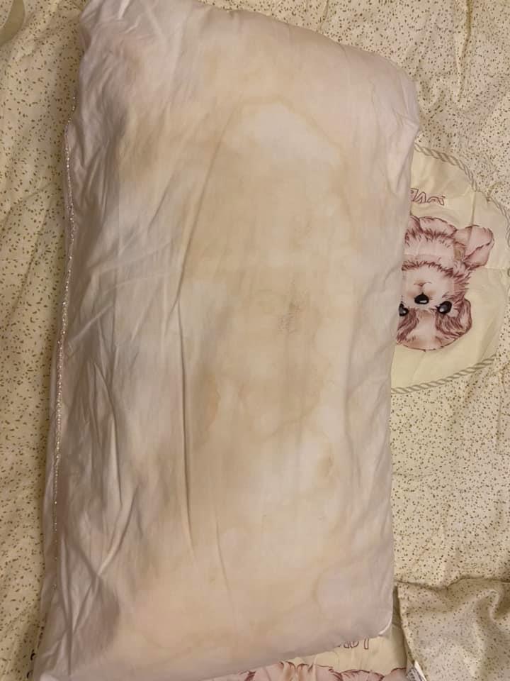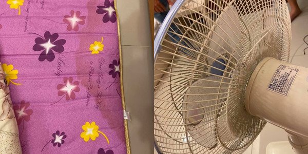 除了床鋪出問題,讓家人受了不小的驚嚇外,整間民宿的設備也很令人不舒服,不只電風扇滿是灰塵,椅子、衣架都生鏽,桌子還掉漆,夏天用的竹蓆床鋪也都發黑、枕頭全部泛黃,讓她直呼:「根本是撿回收的來用嘛!」