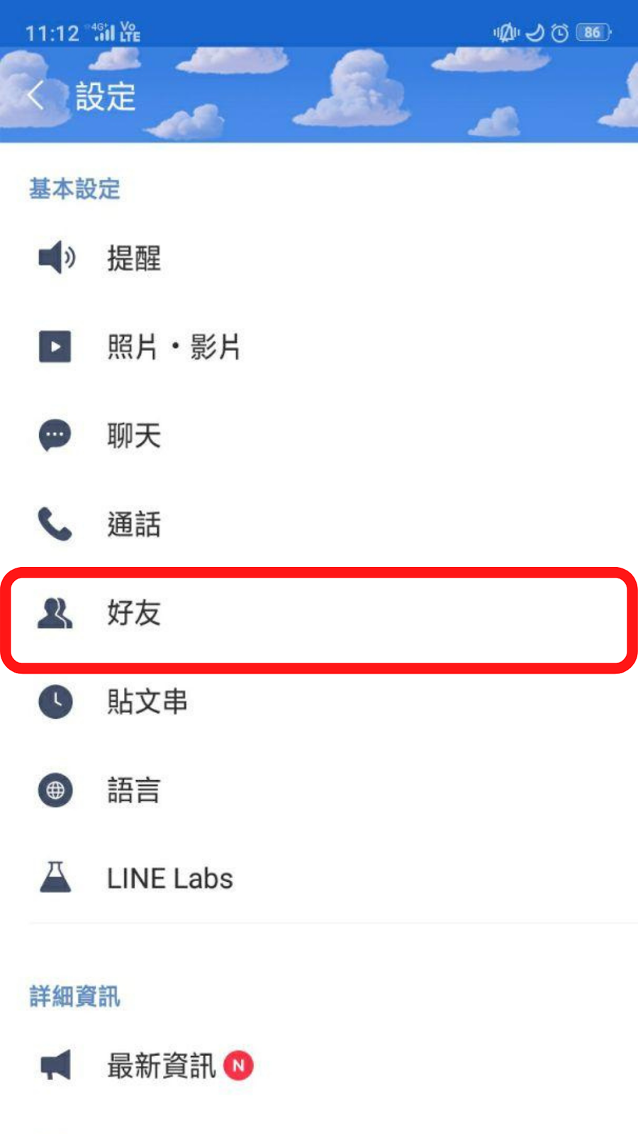 ▼1.開啟設定找到「好友」的選項