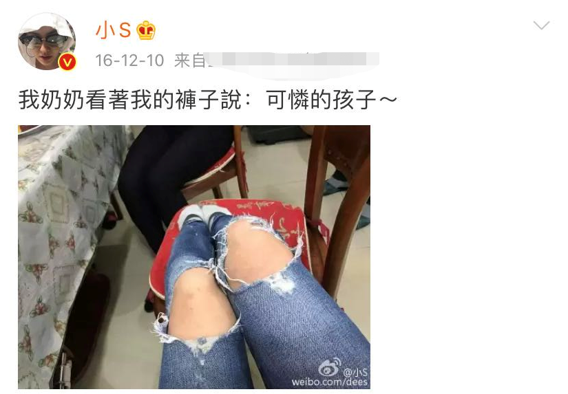 繼續來到2016年,阿嫲還關心小S的潮流破洞褲。