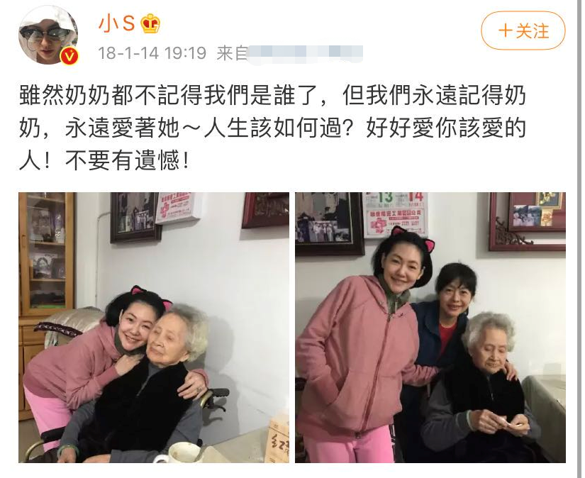 其實,翻看小S的社交平台,就能發現到處都是阿嫲的痕迹,不難看出兩人的感情有多深。