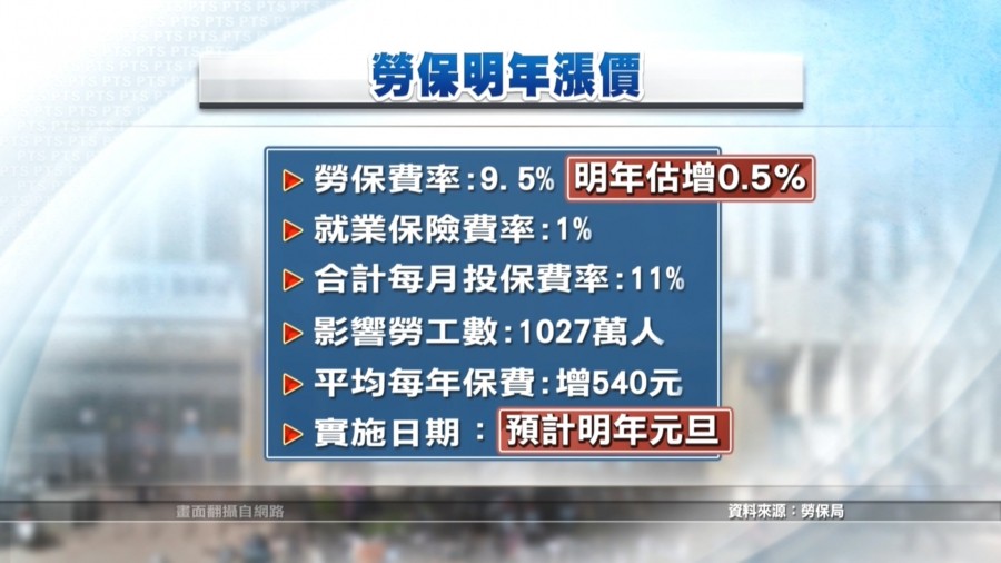 隨著勞保費率的提升,雇主支出的成本也更高,按照目前勞方、資方跟政府負擔的比例為2比7比1,以平均投保薪資3萬2507元計算的話,共764.9萬名員工調漲0.5%,公司將額外支出104.4億元,不過相反的,隨著勞、健保的提高,加上薪水調漲,共計有百萬民眾受惠。