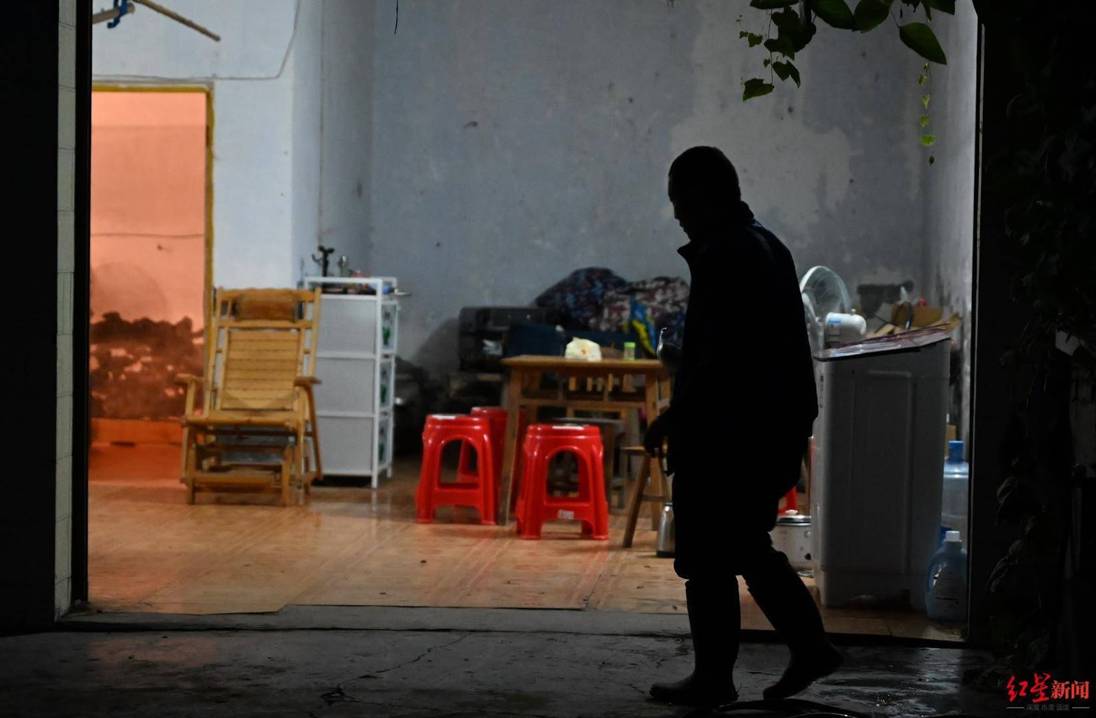回到四川樂山老家,老王坐在空曠的房子裡悵然若失。