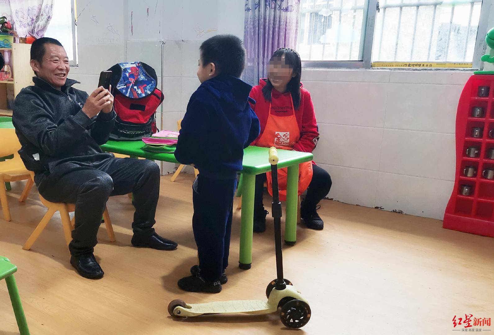 10月15日上午,乘車到達板場鎮,老王在鎮上尋找了一大圈後,才終於確定孫子小熊就讀的幼稚園。等到下午4點,幼稚園放學,他終於看到了小熊的身影。