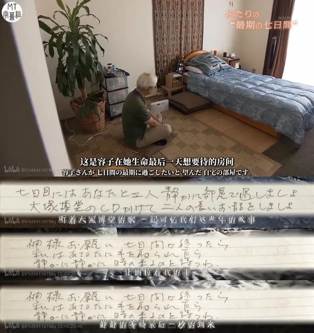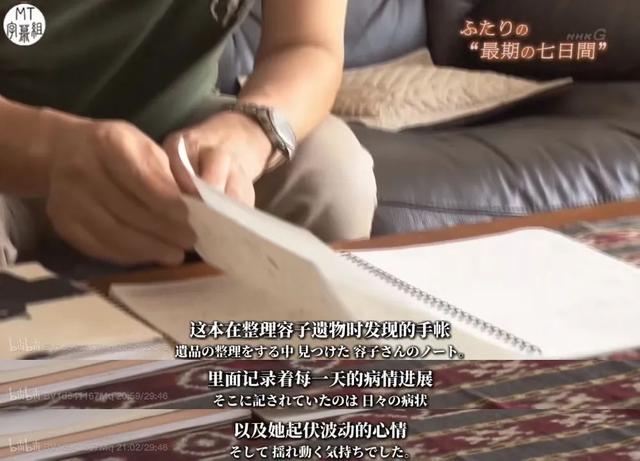 容子害怕花錢,不同意接受治療。宮本英司勸了妻子好久,容子才同意,這天,她喝下了口服藥,趁著丈夫不在的時候,在日記本上寫下了一段文字:「沒有忍不住的副作用。如果能通過治療,多活一天算一點。希望和老伴過的時間能更開心一些。就是想緊緊抓住生命的尾巴。」