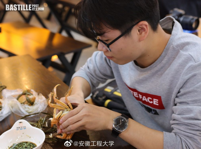 又到了食大閘蟹的好時節!安徽工程大學飯堂近日應季推出8元人民幣(約9.3港元)1隻大閘蟹,隨即引起大批學生聞訊而至,首批100隻大閘蟹在5分鐘內已被搶光。
