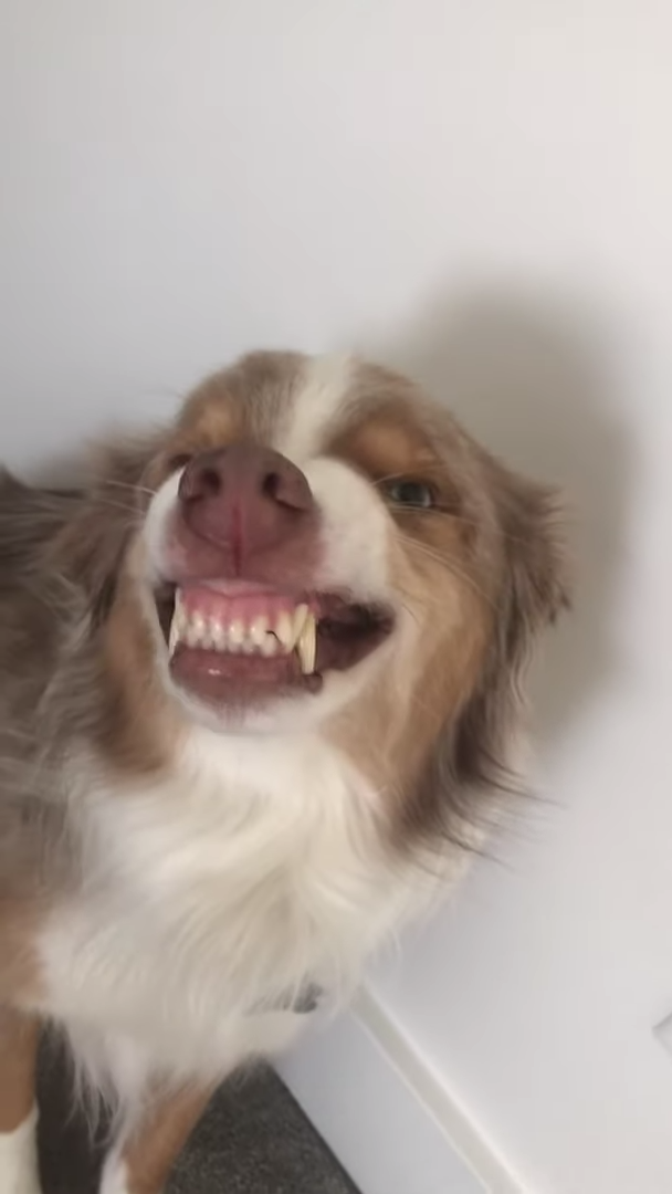 ▼主人Kellie表示他們剛搬到新家不久,也許是因為對新環境還不熟悉又有時差,還處在混亂狀態的Nova不小心在新家的地毯上大便,還被當場抓包,這時急中生智的牠居然露出了超像人類的諂媚笑容想矇混過去~
