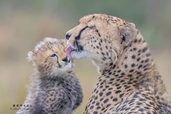 2020年10月04日動物界的母子情太療癒啦~日前加拿大華裔野生動物攝影師Jeffrey Wu到肯亞的動物保護區攝影時,捕捉到了獵豹母子相處的畫面。小獵豹跟媽媽親密相處,牠面帶笑容緊貼媽媽的臉龐,還靠近媽媽的耳朵,好像在說悄悄話:「媽媽我愛你!」