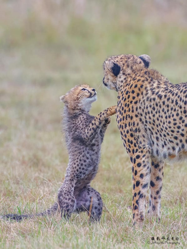 ▼Jeffrey看過很多野生動物賣萌的畫面,但他還是被獵豹母子的互動融化,連忙按下快門拍下這溫馨的瞬間。Jeffrey介紹說,獵豹已經被列入「國際自然保護聯盟瀕危物種紅色名錄」(IUCN)的「易危」級別,需要好好保護。