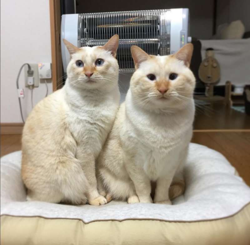 ▼兩隻喵喵已經四歲囉,平常沒事就喜歡依偎在一起。
