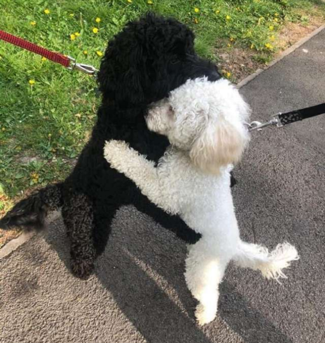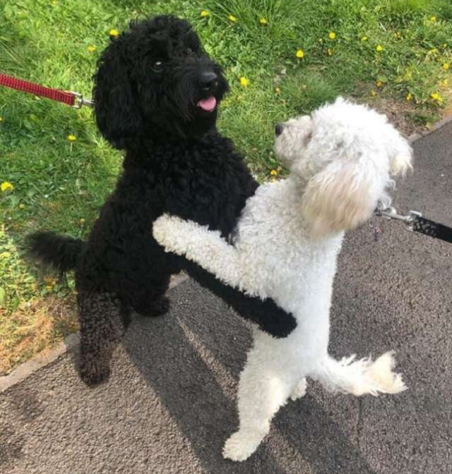 ▼這次Rosie和Monty在散步途中偶遇,一下子就認出了彼此。Susan笑說:「牠們一遇到彼此就開心地跳起來,還互相擁抱。即使10個月沒有見面,牠們還記得對方,真是太驚奇了!」