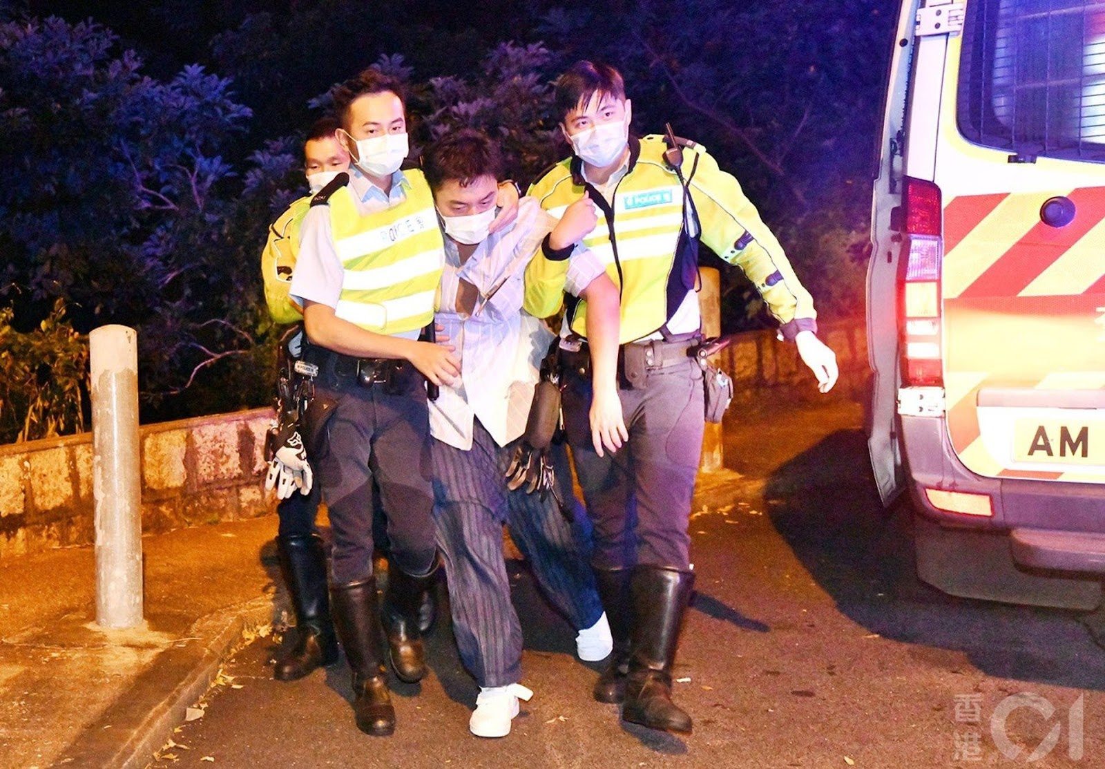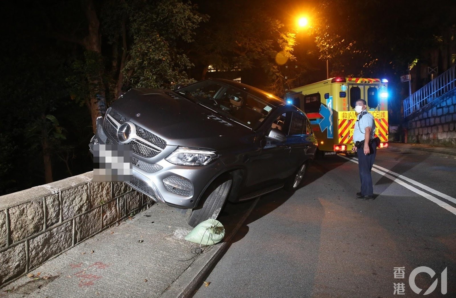 事發今年8月8日凌晨約零時,楊明駕駛平治私家車,沿山頂馬己仙峽道落山,途至近玫瑰別墅對開一左彎時,據報失控越過對面行車線,首先撞向路邊防撞欄,繼而衝前約60米,猛撼石牆後始停下,右邊車頭擱於石牆上。警員趕抵後,發現姓林男司機(楊明原名林楊明,後改名林明樂)滿身酒氣,需由2名警員扶上救護車。
