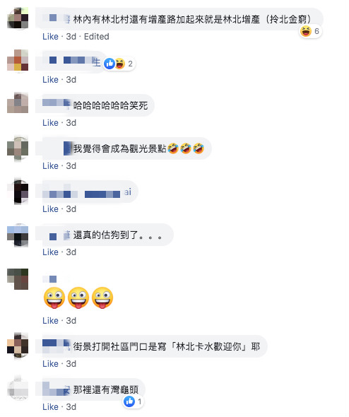 看完這篇貼文後,網友們全都笑翻了,不少人一開始還不信邪,結果上網查詢後,也都跟原PO一樣覺得超傻眼,「這個後勁好強」、「哈哈哈哈真的有我去估狗了,而且還是在林北村」、「飯全噴到螢幕上了」、「林北村長啦」、「有村長辦公室電話嗎?認識一下」、「我以為是個笑話結果真的有!」