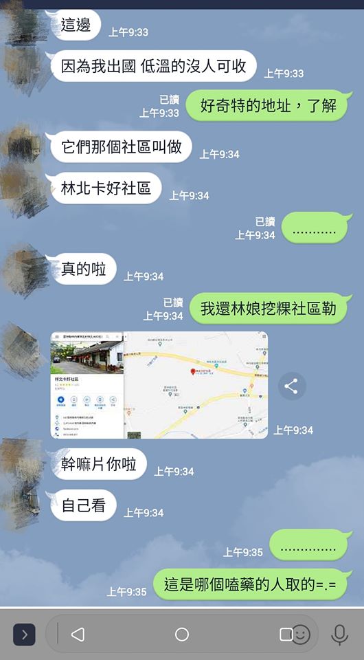 根據《TVBS新聞網》報導,這位網友在臉書「爆笑公社」中分享了自己和朋友的LINE對話截圖,表示日前想要寄東西給朋友,結果對方因為要出國,暫時無法收包裹,於是決定給他另一個能夠代收的地址,但是該地點居然寫著「林北卡好社區」,讓原PO看完超傻眼,覺得自己被惡搞了,便翻白眼回應道:「我還林北挖粿(碗粿)社區勒!」