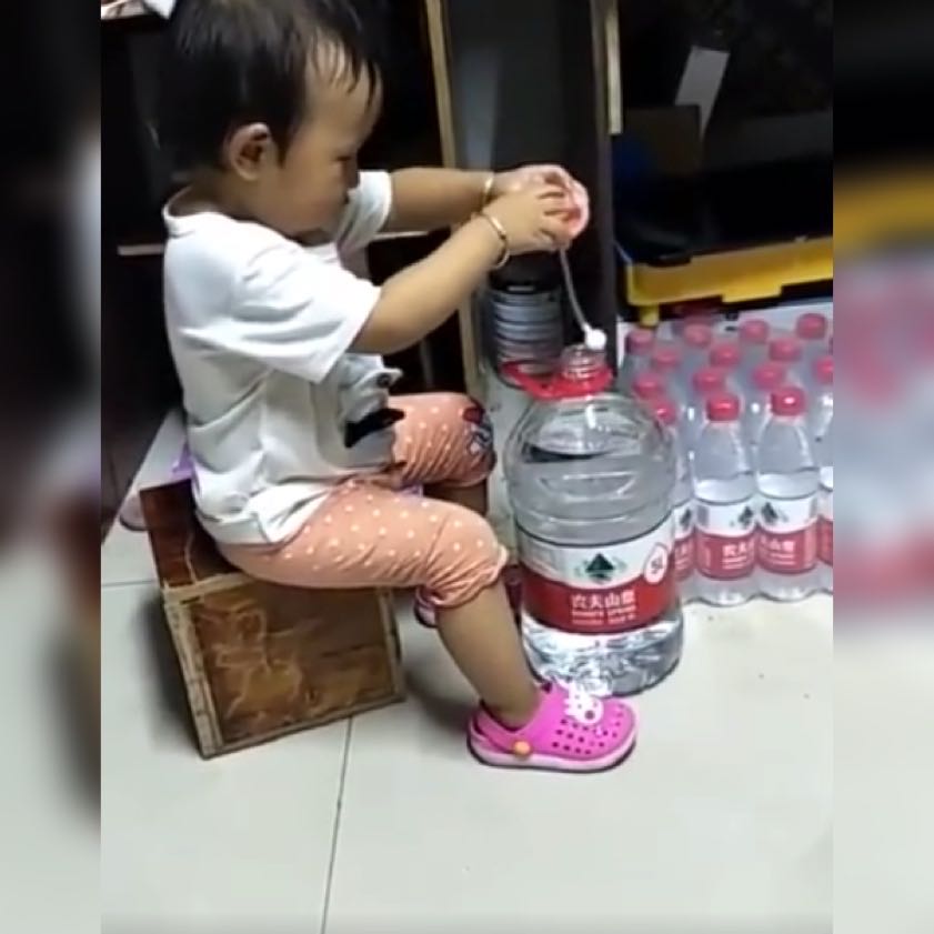 近日,網路上一位口渴了想要喝水卻沒有能力去搬動一桶水,於是自己想出妙計應對的小女孩引起了廣泛的關注。