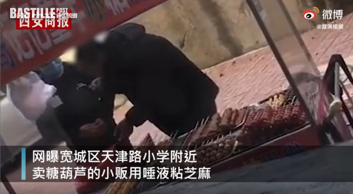 糖葫蘆是很多北方小孩喜歡吃的零食之一,糖葫蘆小販自然也知道這點,所以內地許多學校附近都有糖葫蘆攤販。不過如果糖葫蘆做得不衞生,很容易引起孩子身體不適,甚至更嚴重的後果。近日,有人揭發市面有小販製作糖葫蘆時竟用口水沾芝麻,令網民看了大呼「太噁心了!」