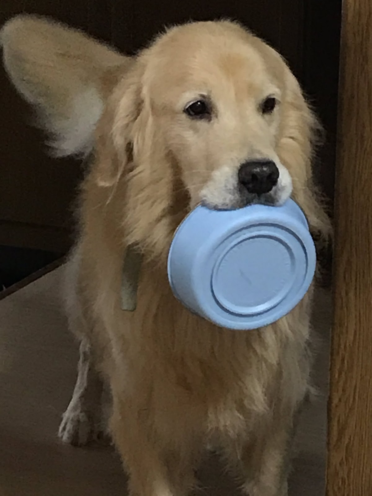 今年7歲的哈利平常愛吃又愛睡,那天全家人只見牠叼著碗出現,頭毛還有些凌亂,可見哈利對於美食真的非常執著,這樣的反應也讓家人們都覺得超搞笑!