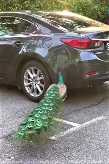 這情況能算在車險理賠範圍嗎?XD日前新加坡某戶外停車場有輛轎車,本來停在那好端端的卻莫名遭到「孔雀攻擊」,對著左後輪的車屁股一陣狂踢狂抓,讓人看了既驚訝又忍不住好笑,孔雀你到底是跟這車子有什麼仇啊?