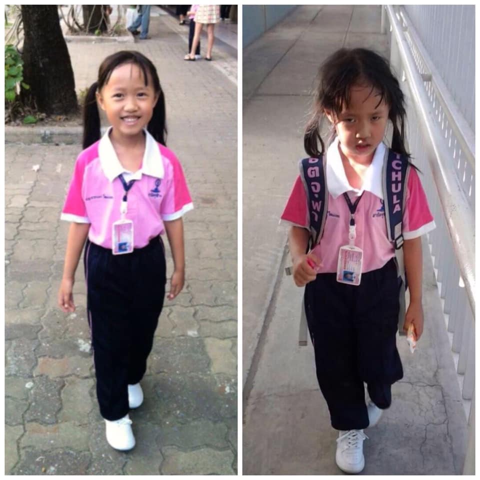 ▼「我女兒今年5歲,這是她上學前後的對比。」
