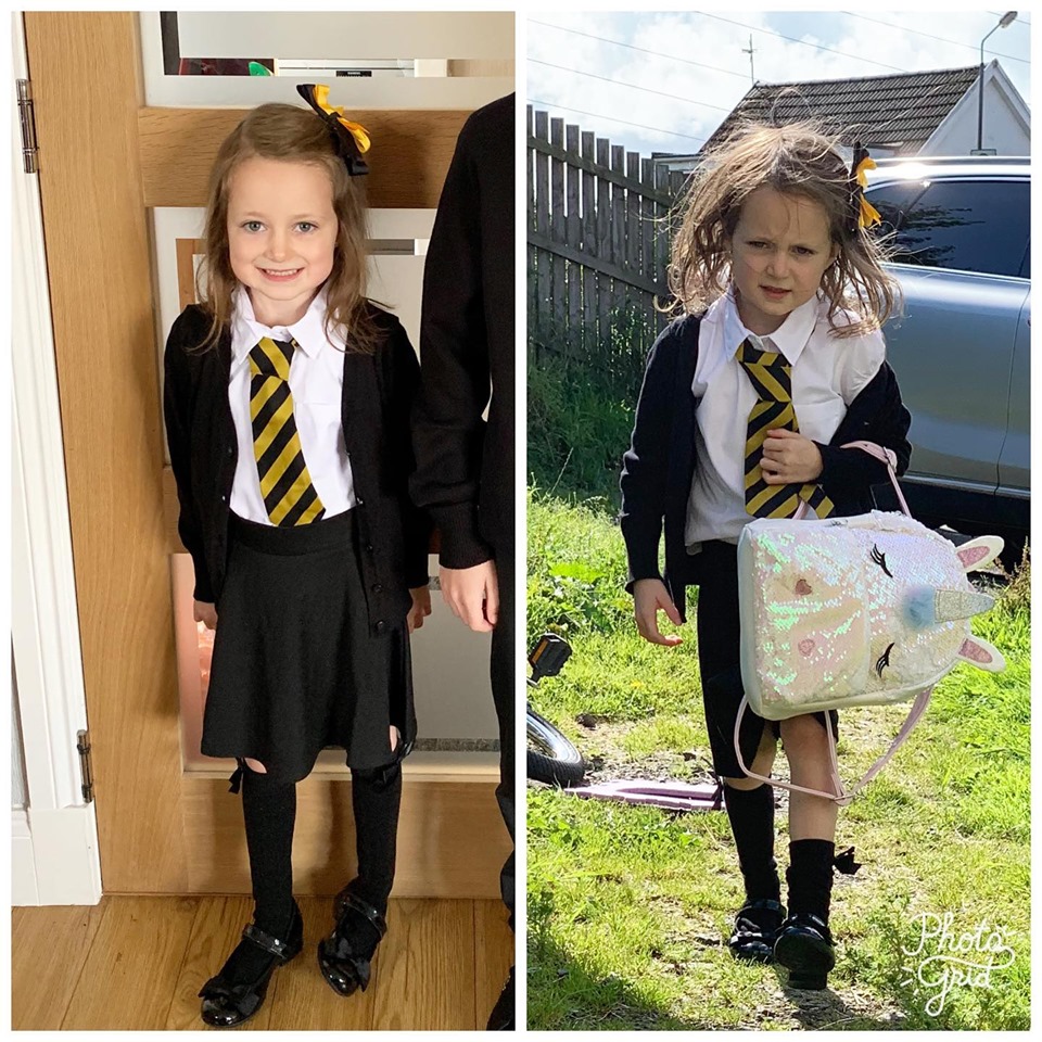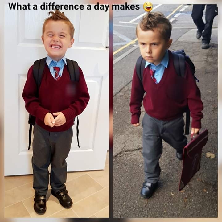 2020年10月02日面對開學,父母和小孩的感受截然不同。家長終於能把小孩送到學校,有一點屬於自己的時間;小孩卻要回到規律嚴格的學校生活中去。紐西蘭媽媽Jillian就在臉書分享了女兒Lucie開學第一天,上學前和放學後的對比照。上學時興奮期待的孩子,回來後竟然大變樣。