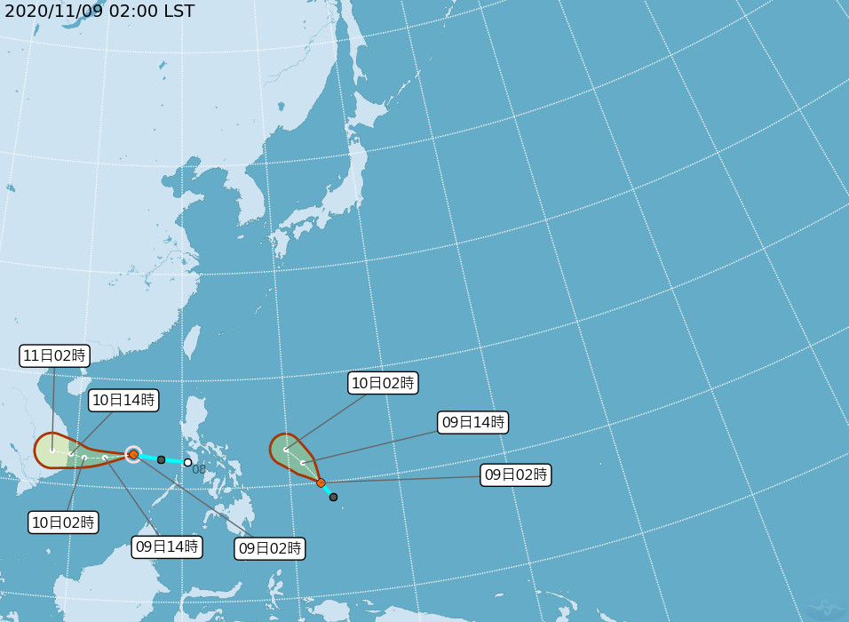 閃電颱風在上周末離開台灣,期間帶給中南部大量水氣,而今日(9號)氣象局宣布第21號颱風「艾陶」發展為輕度颱風,菲律賓東方海面上還有第22號颱風「梵高」今天準備生成,雙颱在短時間內陸續形成,讓氣象局相當關注未來動向。