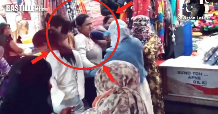 從影片可見,一群女子正在市場中央互相拉扯,左方身穿深藍色上衣的婦人先是扯掉淺藍色外套少女頭上的圍巾,再不斷出手毆打其頭部、抓住她頭髮猛搧耳光,還拿起手邊物品朝女生扔擲,女生不甘示弱還手,雙方在路上發生衝撞。