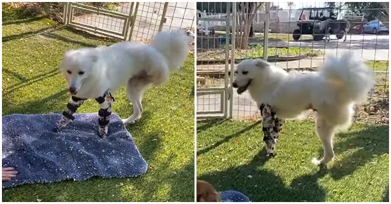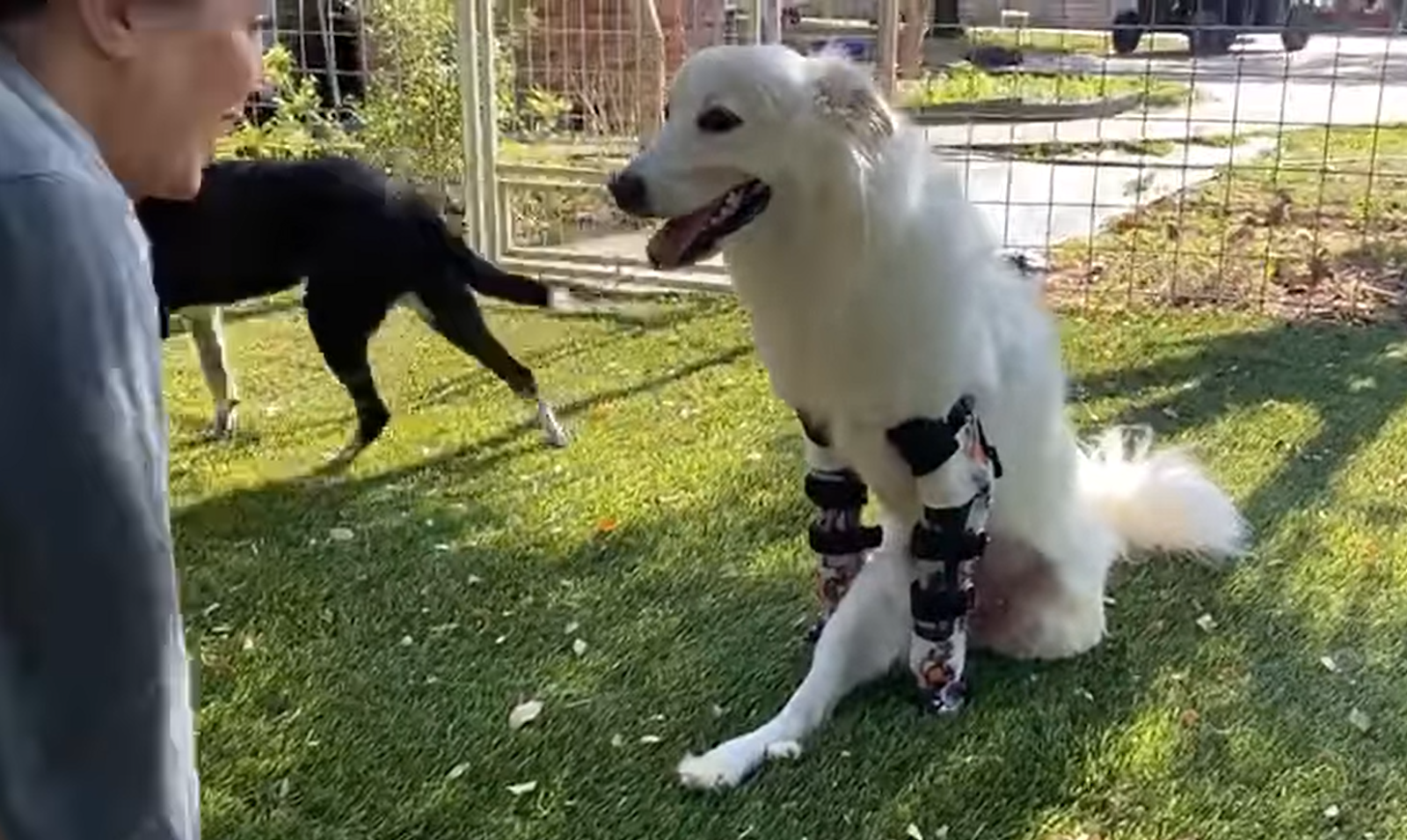 腳腳剩1隻...阿汪收到義肢「笑沒停過」 站起後超開心:我可以跑了耶♡