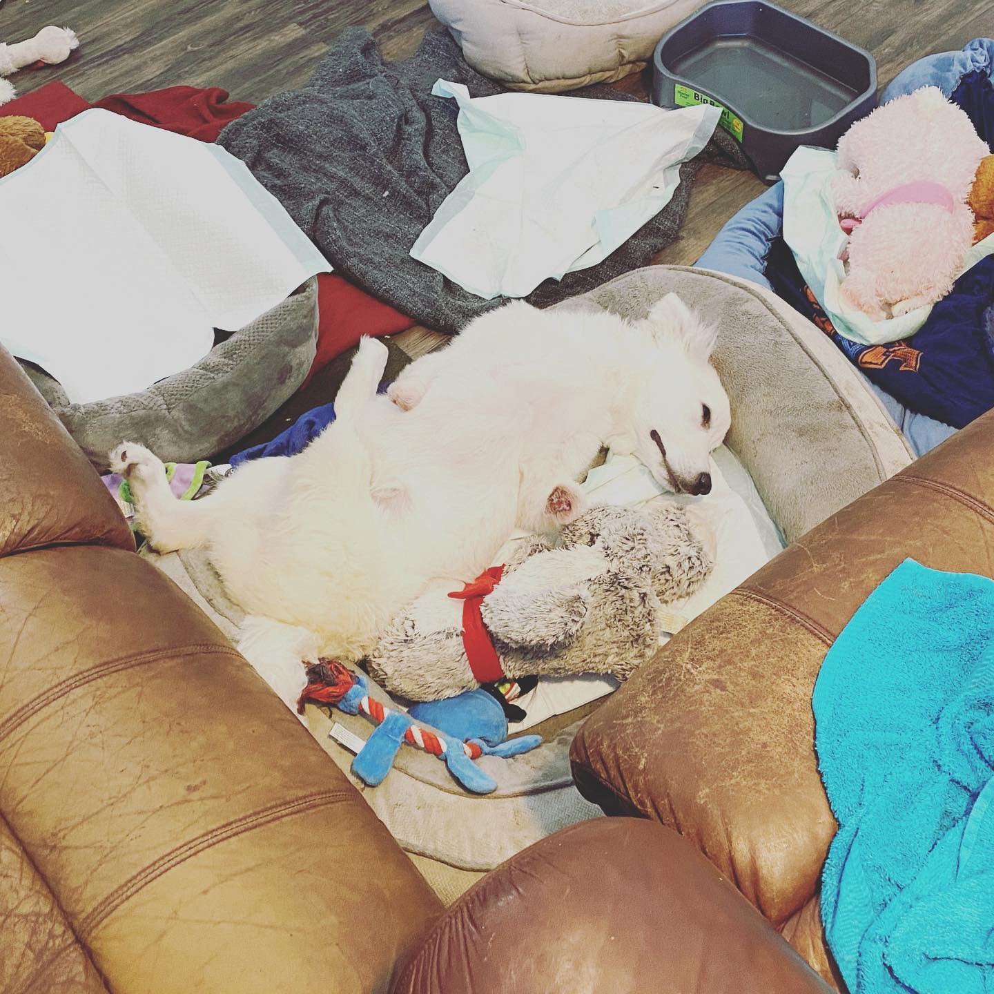 2020年11月04日毛孩的笑容有療癒人心的力量~國外有一隻叫Halo的大白熊犬,牠原本生活在繁殖場,生病後被拋棄了。好心人將奄奄一息的Halo送到獸醫院,為了保住牠的生命,獸醫只能將牠的兩隻前腳,還有一隻後腳截肢。志工Wallace-Griner肩負起了照顧這隻狗狗的重任。