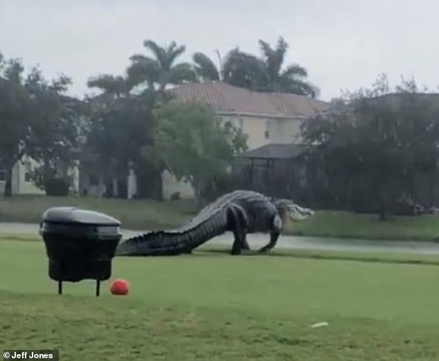 2020年11月14日美國佛羅里達州經常有短吻鱷出沒,該州估計有130多萬隻野生短吻鱷。近日在佛羅里達州那不勒斯(Naples)的高爾夫球場,一位網友Jeff Jones拍到了一隻約3公尺長的巨大鱷魚。牠超誇張的體型很快就在網路上引發熱議!
