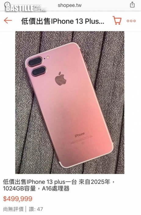 一位女網友最近在社交網站發文分享自己在逛購物平台「蝦皮」時遇到的趣事。她發現有位自稱來自2025年的未來人賣家在低價出售「iPhone 13 plus」,不僅po出手機實物照,還詳細羅列出手機的規格,令她大呼「有趣」。
