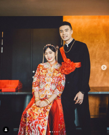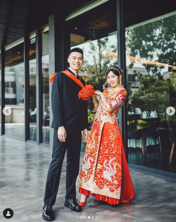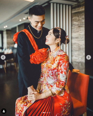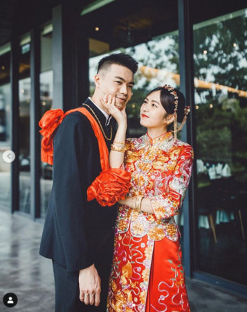 從照片中可以看到,有別於以往看到的西式婚紗風格,簡廷芮與賴先生的文定婚照特別選擇了中式的婚服!細緻的刺繡、典雅的配飾,再加上這對新人的夢幻高顏值,使得整個畫面頓時喜氣洋洋、充滿著幸福的味道~
