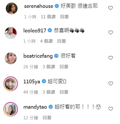 而這組美照上傳後,不僅在短短的時間內就吸引了將近7萬名的粉絲,並狂讚:「應該是上輩子做了很多好事」,還有像是房思瑜、張立東、方志友、元元和陶嫚曼等明星好友也都出面道喜,並紛紛留言:「好美好適合!」對此簡廷芮也打趣回應:「我也是這麼跟他(賴先生)說的。」