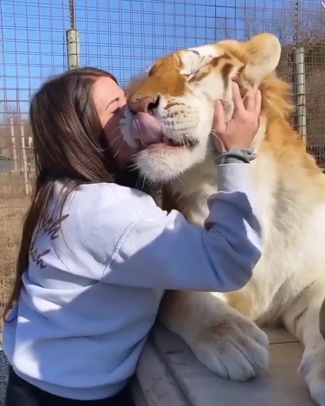 ▼女子跟老虎超親近: