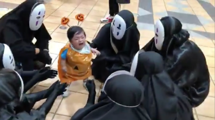 馬麻救救偶!南瓜底迪萬聖節「被無臉男大軍包圍」 下一秒「嚇到哭出來」最後結局笑翻全網
